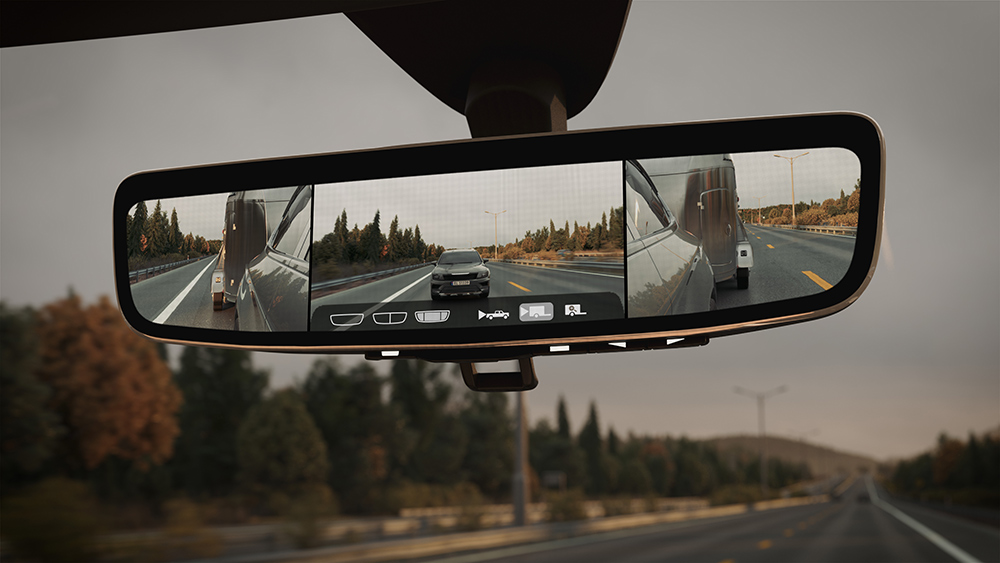 ClearView™サイドミラーは、法規制に準拠したドアミラーにカメラを統合したものです。 より広い視野、直感的なダイナミックオーバーレイ、走行抵抗の低減、低照度での視認性の向上を特徴とするシステムで、Aピラー内側に統合された画面にカメラからのライブフィードを表示します。ClearView™は、カメラウィングのみのオプションとしても利用でき、豊富な機能とスタイリングの可能性を提供します。